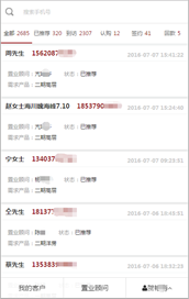 客戶信息審核:置業(yè)顧問在微信端接收到推送過來的客戶數(shù)據,可根據設置的模式獲得客戶數(shù)據,也可進行搶單,將客戶變?yōu)樽约旱母M客戶,進行客戶信息的初步審核。
